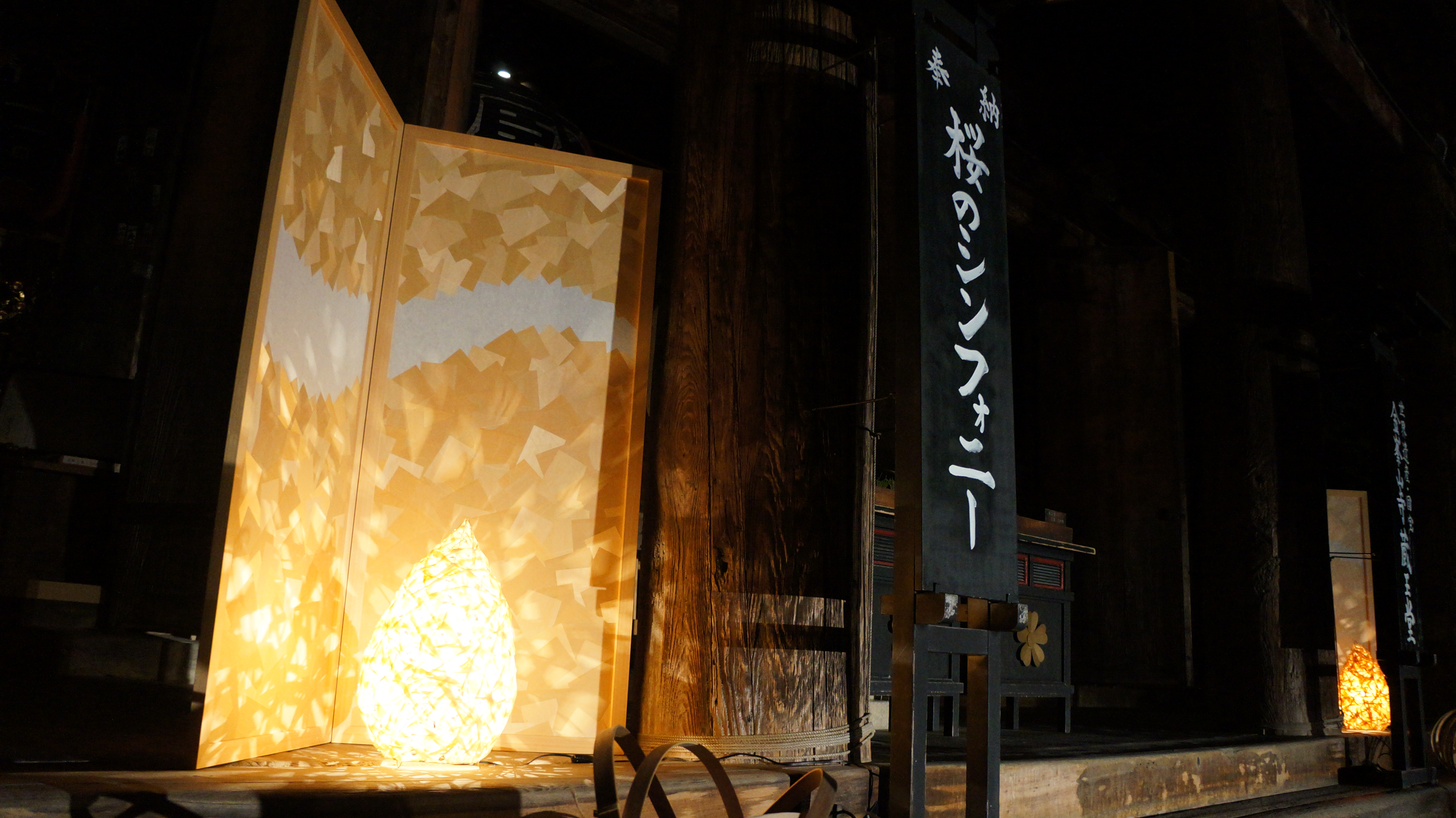 作家による特産の吉野の木材を使った光のアートも優美な雰囲気を創り出していました。